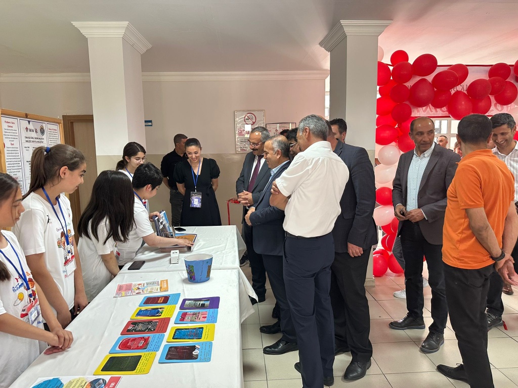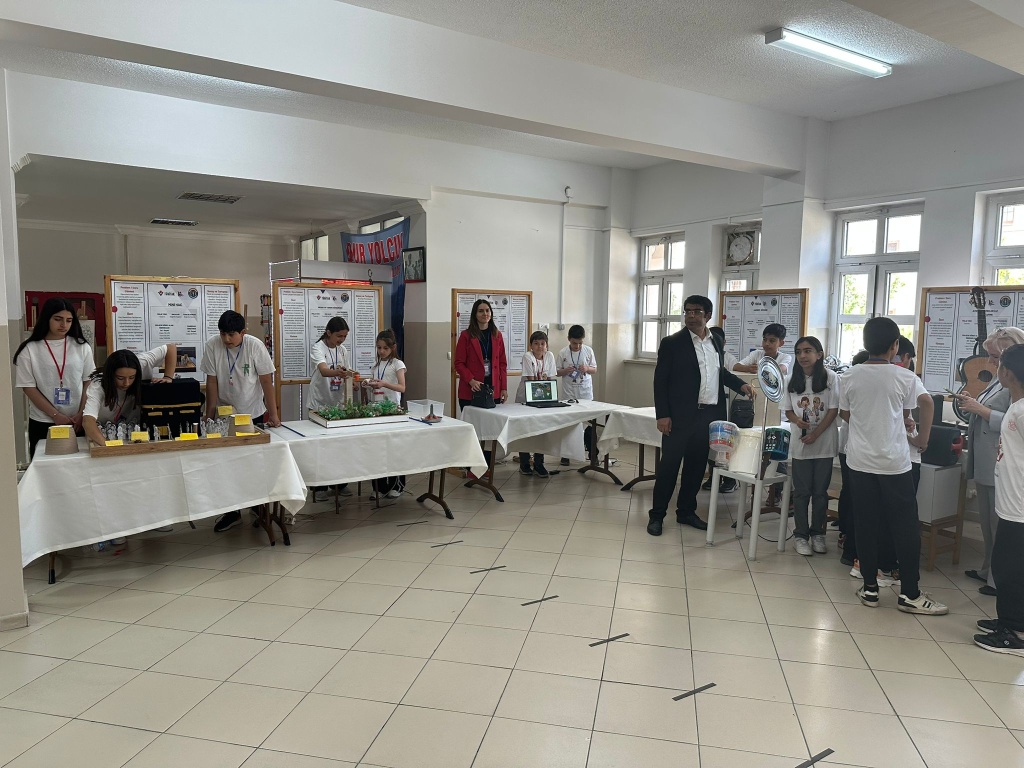Tübitak 4006 Bilim Fuarları Projesi kapsamında okulumuzun hazırlamış olduğu bilim fuarı etkinliğine İl Milli Eğitim Müdürlüğü şube müdürlerimiz ve beraberlerinde daire amirleri, okul müdürleri katıldılar. Öğrencilerin projelerinin sunumlarını yaptıkları fuar etkinliğinde renkli görüntüler ortaya çıktı. Proje standlarını gezen katılımcılar öğrencilerin çalışmalarını dikkatle inceledi ve sunumlarından ötürü onları tebrik ettiler. Bizler de böyle güzel bir etkinliğin ortaya çıkmasında büyük emeği olan Matematik öğretmenimiz Selinay FATİHOĞLU'na, öğretmenlerimize, okul idaremize ve öğrencilerimize teşekkürlerimizi sunarız.